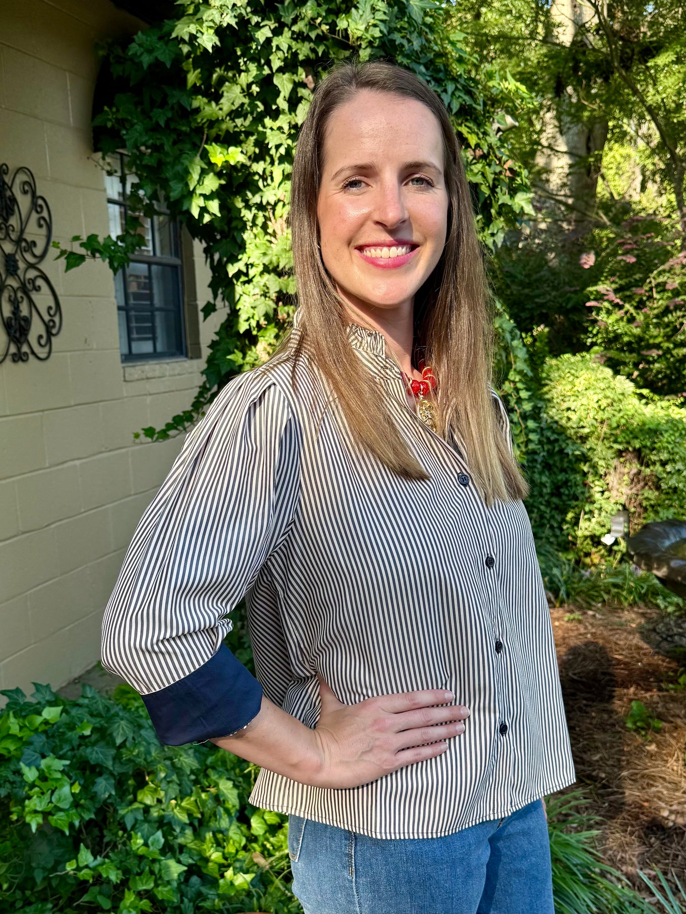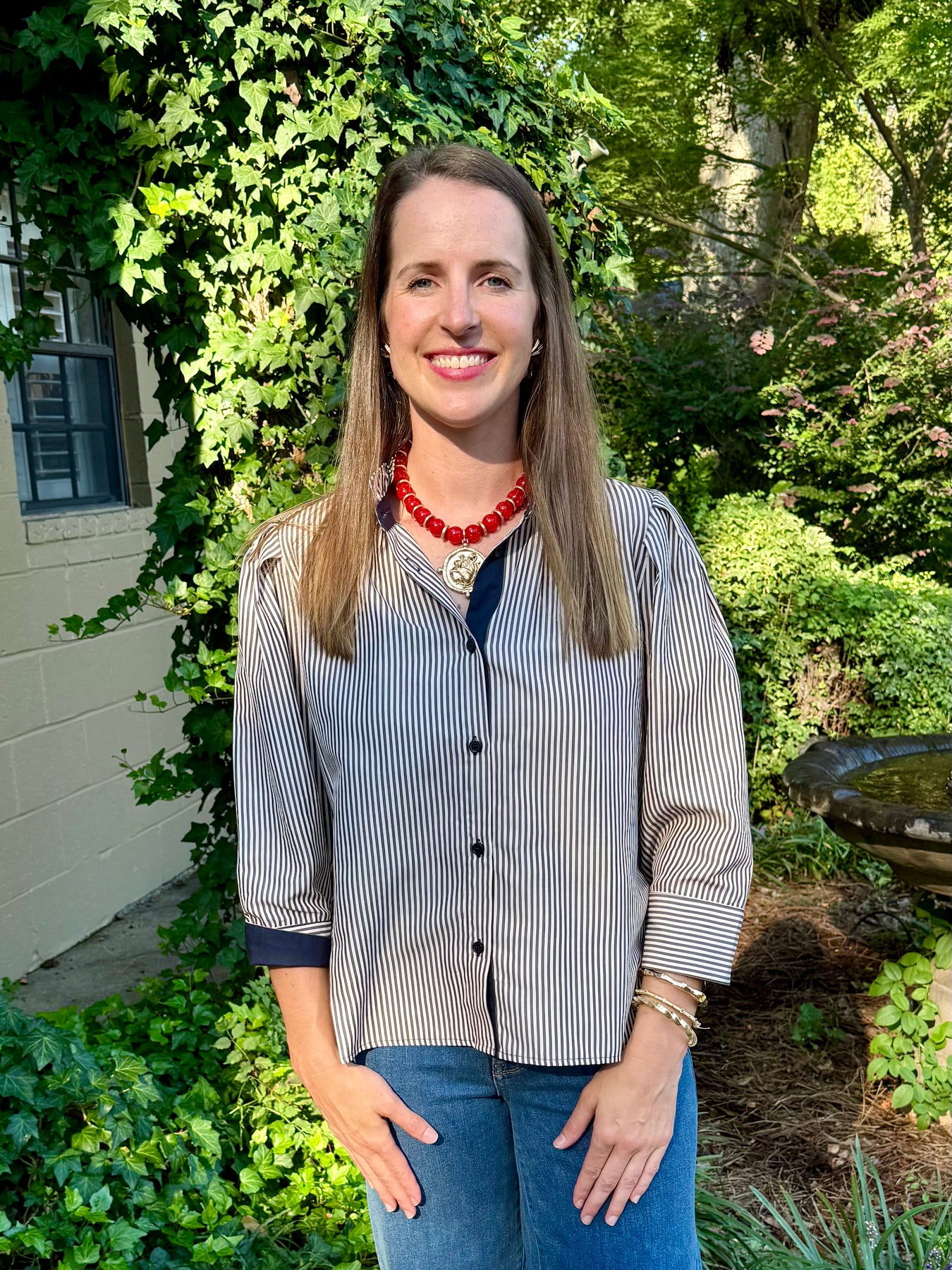 The hidden detail you’ll love? Roll the cuffs for a peek of contrasting solid fabric — a playful pop of sass that takes this top from polished to personality-packed.