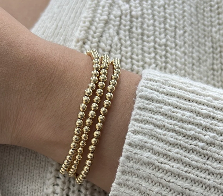 Add a touch of elegance and style to your everyday look with our 4mm Beaded Bracelet. Made with high quality USA 14kt Gold Filled Beads or sterling silver beads, this bracelet is both versatile and durable. Worry-free wear allows you to take it with you for every occasion - sleep, shower, and sweat in it. Stack it with other bracelets for a trendy and personalized look.