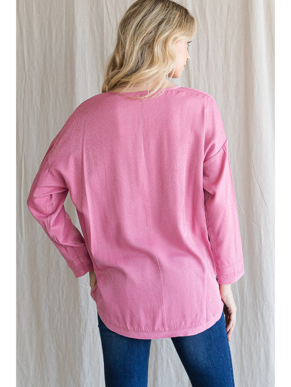 • What a beautiful monochromatic leopard print top with a v neck and long sleeves. Oversize but fabric does not stretch. Long enough for leggings.