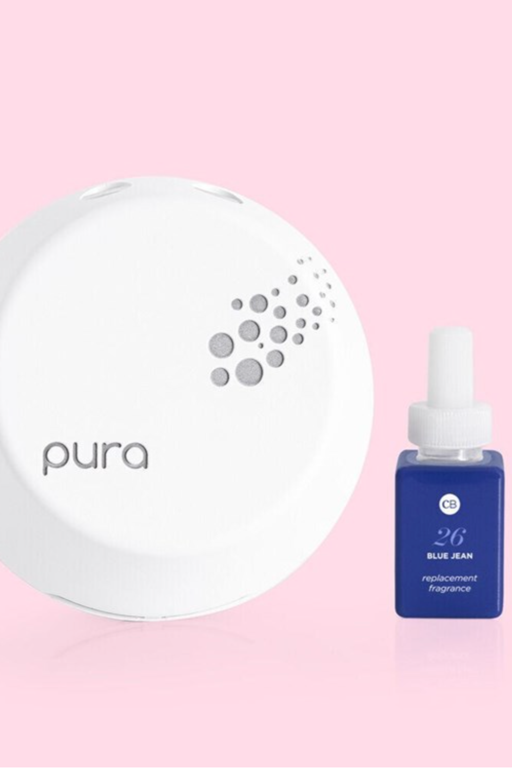 Blue Jean Capri Blue Pura Fragrance Refill, 0.33 fl oz Our classic comfort fragrance, Blue Jean, is now available for use in your Pura diffuser! Pura lets you control your device from anywhere, and you can set custom schedules and choose your fragrance level to keep your house smelling fresh. So, let our famous Blue Jean scent welcome you and your guests - it's the perfect complement to any space!