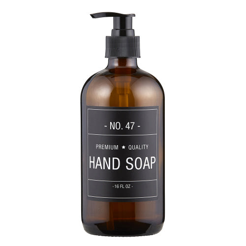• Amber glass dish soap bottle with a pump.  Beautiful for your kitchen counter.