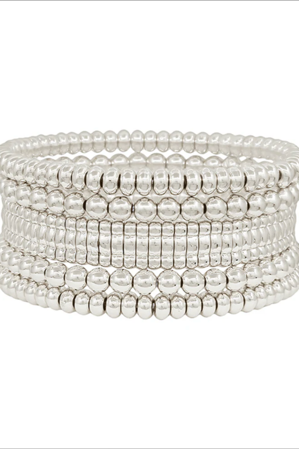 Add a touch of fun to your outfit with the Margaret Stretch Bracelet set! This 5 piece set includes 4 beaded bracelets and one flat bead bracelet, available in gold or silver tone. Lightweight and water resistant, it's the perfect accessory for any occasion.