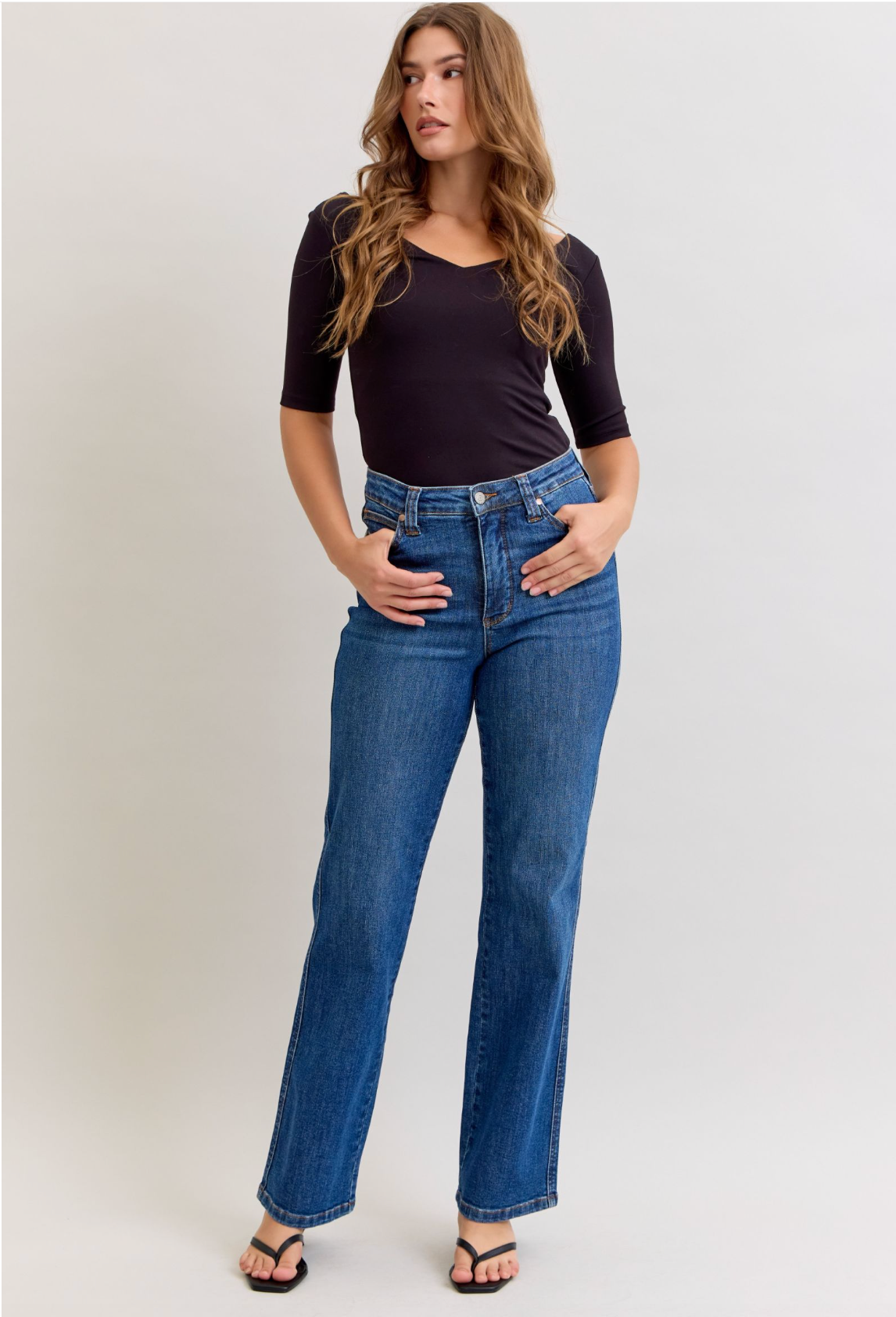 Meet your new favorite denim: the Clara Straight Jeans by Judy Blue. Designed with a high waist and tummy control, these jeans deliver the perfect combination of comfort, style, and functionality. Crafted with Judy Blue’s signature super-stretchy fabric, they offer an authentic fit that’s straight from the thigh to the ankle, making them a versatile staple for every wardrobe.