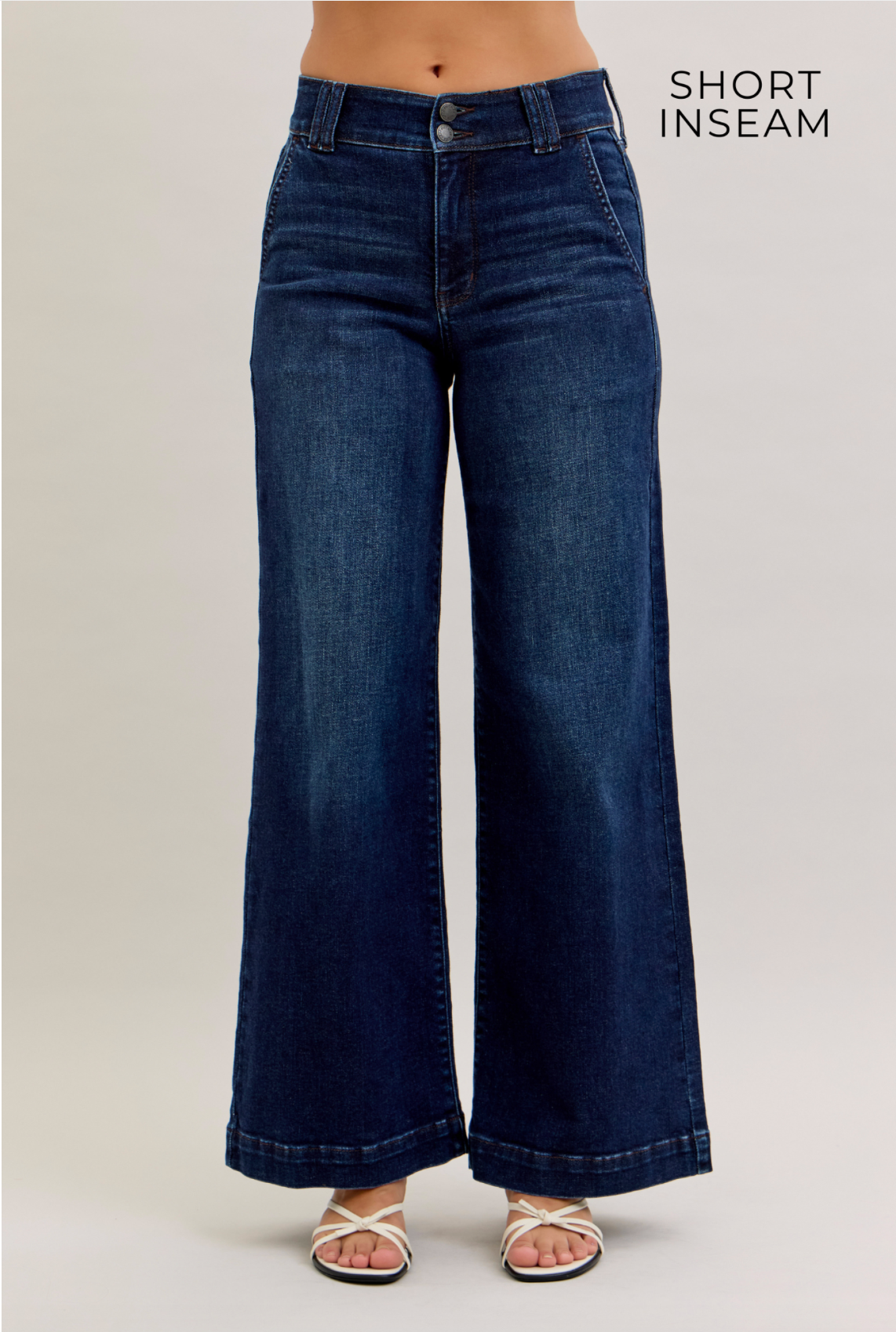Upgrade your denim game with the Parton High Waist Trouser Wide Leg Jeans from Judy Blue Dark Wash, your new go-to for chic, confident style. Designed with a high-rise waist and amazing stretch, these jeans offer the perfect balance of comfort and sophistication.