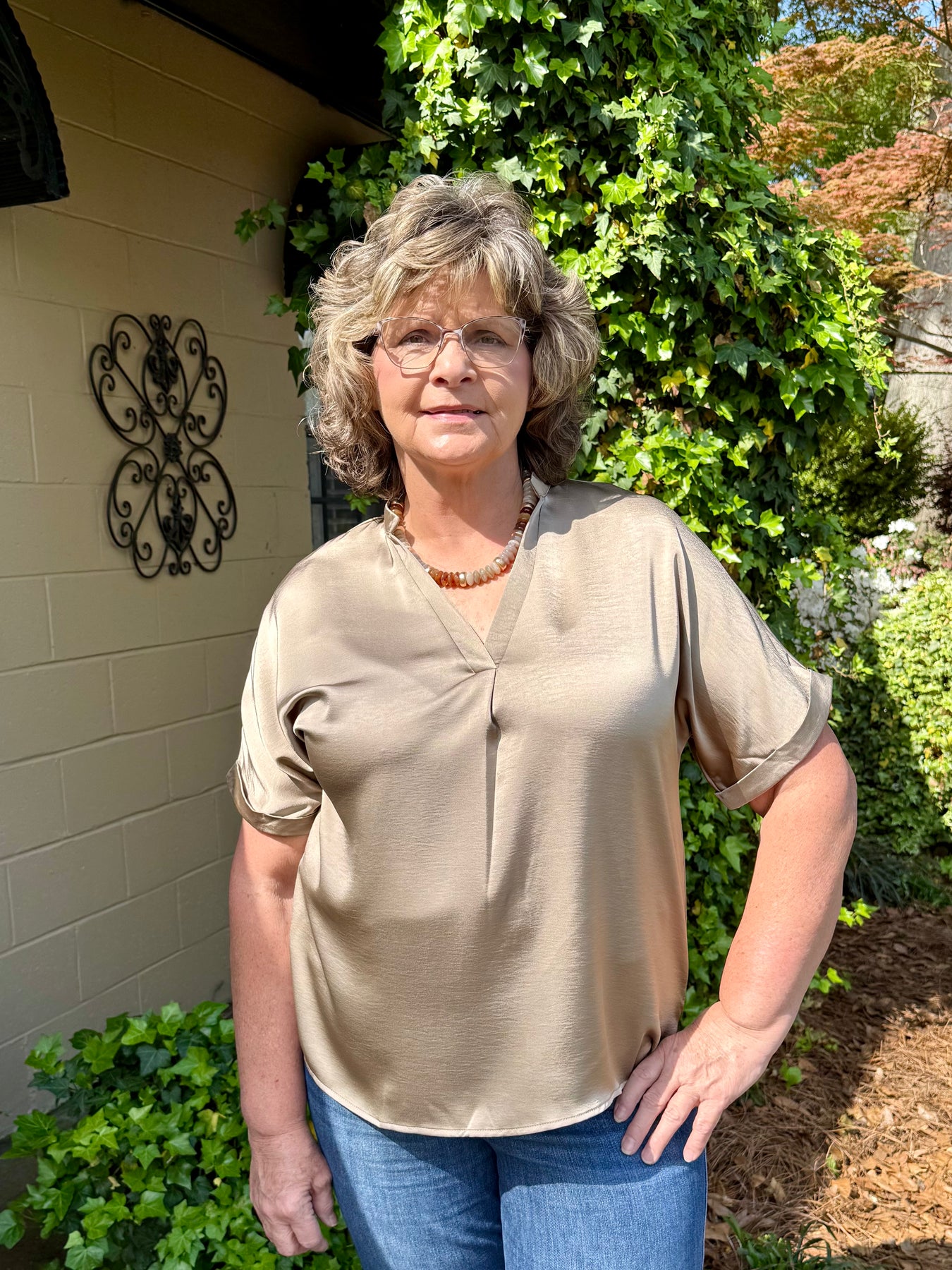Selena V-Neck Short Sleeve Top — the top you'll reach for again and again. Designed for the woman who appreciates timeless style without sacrificing comfort, this classic piece strikes the perfect balance between classy, elegant, and effortlessly chic.