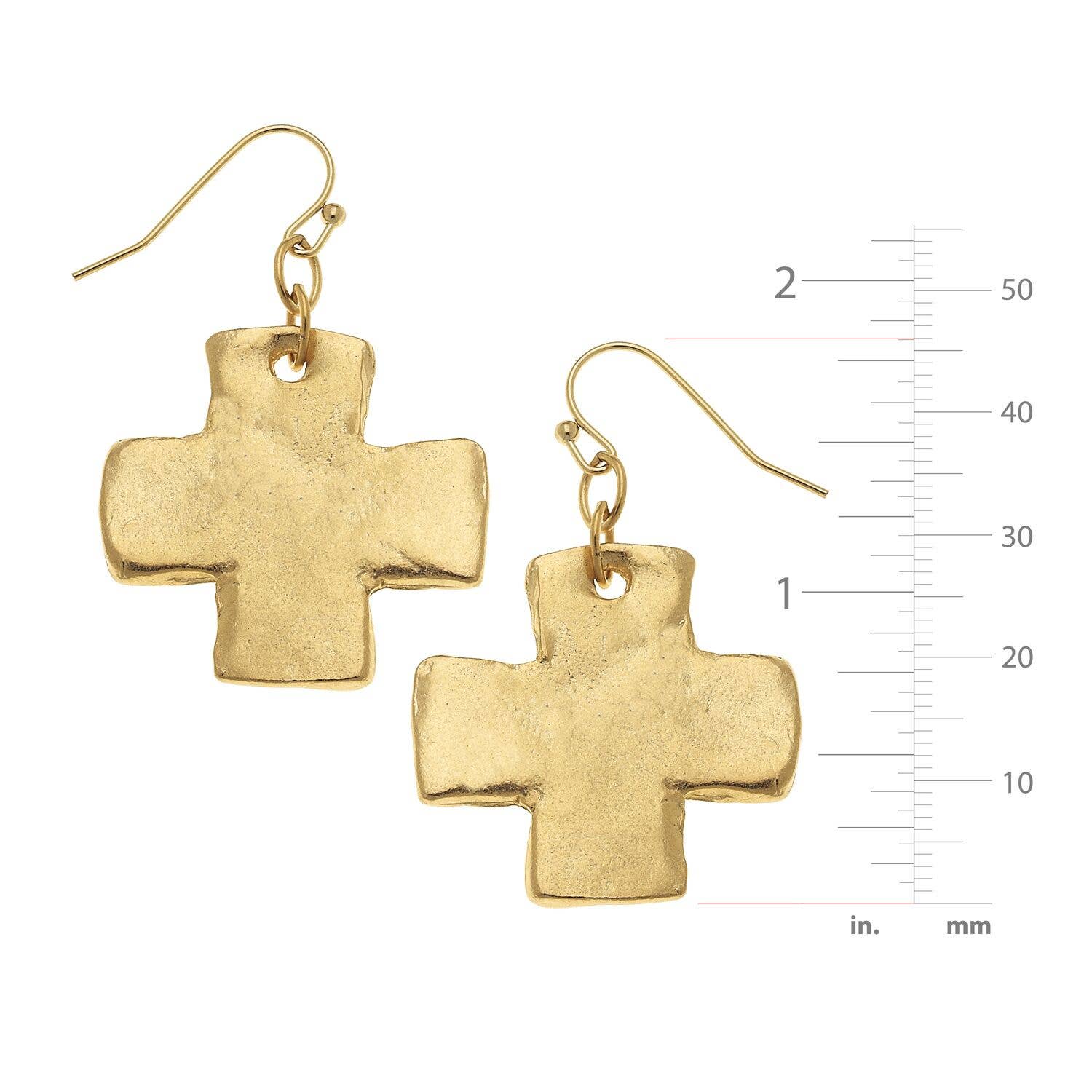 Susan Shaw Gold Cross Dangle Earrings - Handmade Statement Jewelry