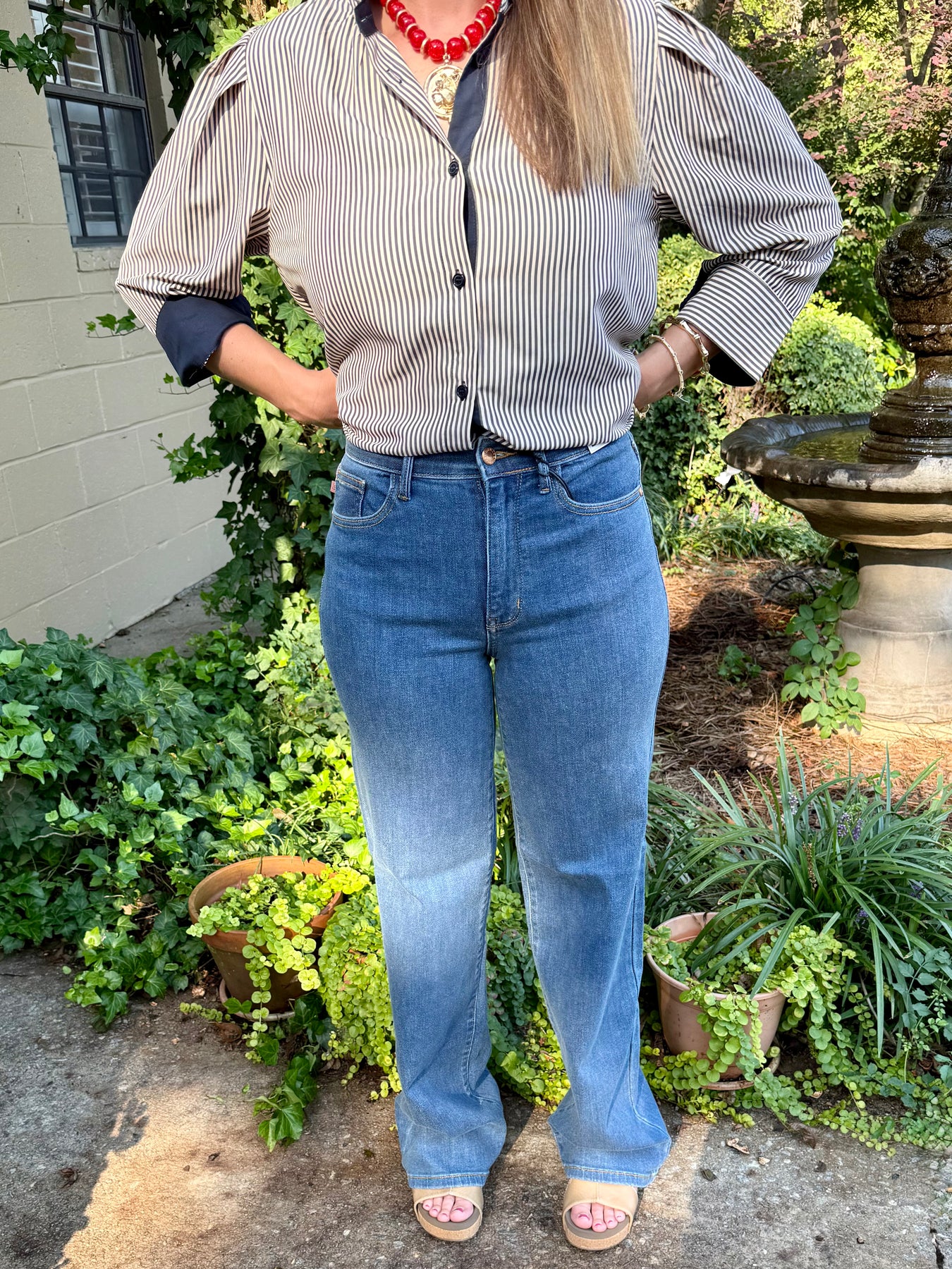 Featuring a trendy wide leg silhouette, they’re a fresh twist on a timeless style and give you that effortlessly chic, laid-back look. The true-to-size Judy Blue fit ensures a comfortable, confident wear every time, making them your must-have jeans of the season.
