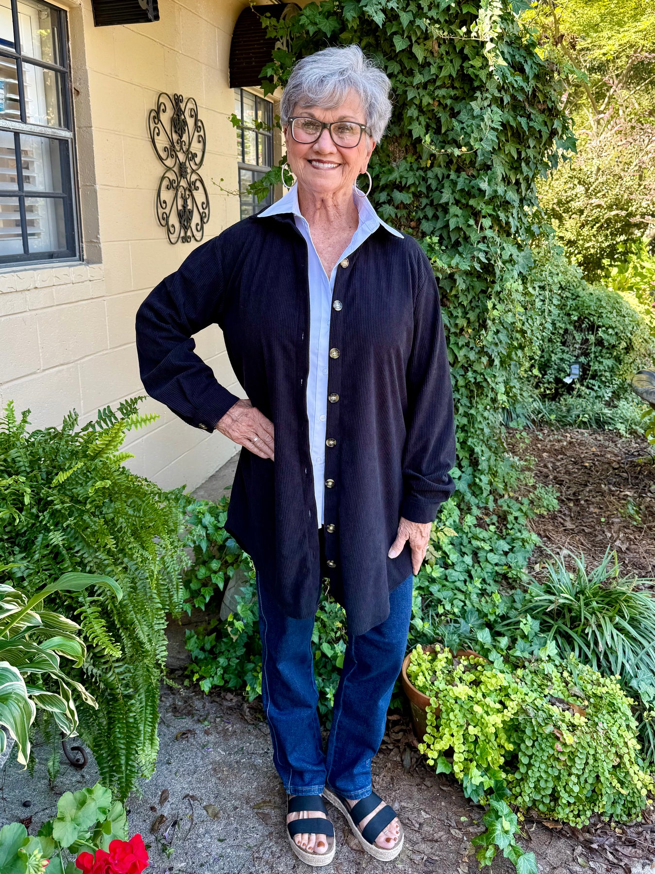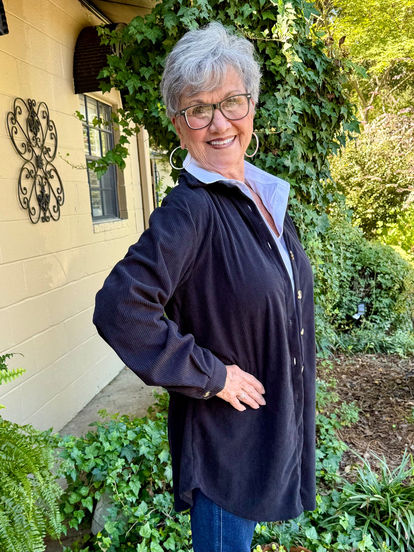 Meet your new favorite throw-on-and-go piece — the Gina Corduroy Shacket! This solid black button-down offers the perfect mix of casual comfort and timeless style. With its longer length and lightweight corduroy fabric, it’s the ultimate layering staple for cooler seasons. Can be worn as a shacket or tunic.