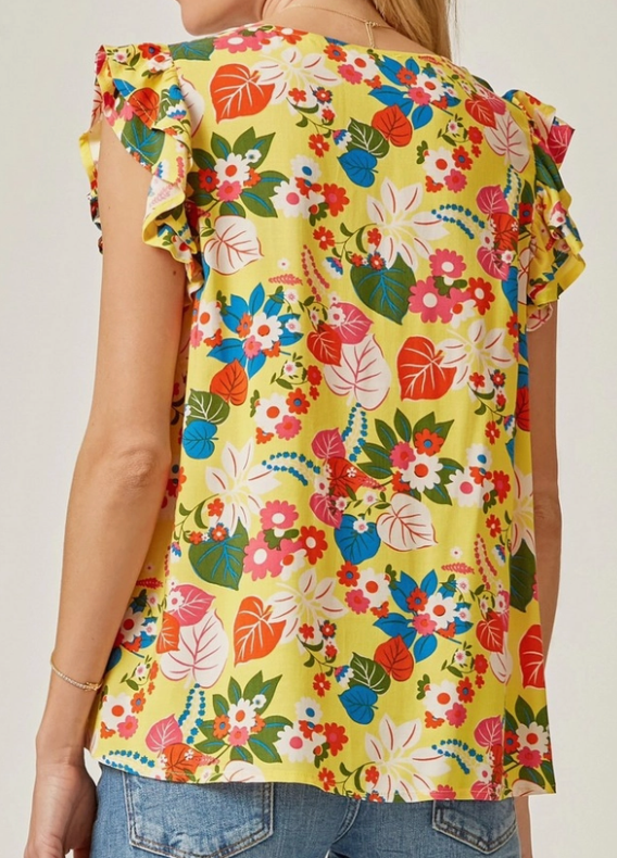 Make a statement in the Gail Short Sleeve Top, where vibrant florals come alive! Enjoy the comforts of 100% Rayon and float on the breeze in its pretty flutter sleeves. Classy V-neck and stunning colors mean you’re sure to turn heads! (It's a style that will have 'em seeing flowers.)
