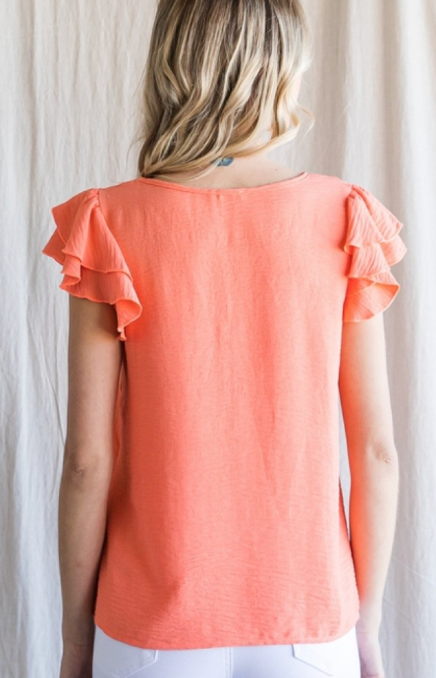 - This cute ruffle sleeve top is a classic piece that everyone needs! It's made from a lightweight material and features a round neckline with a relaxed fit. A great top to jazz up any outfit. True to size.