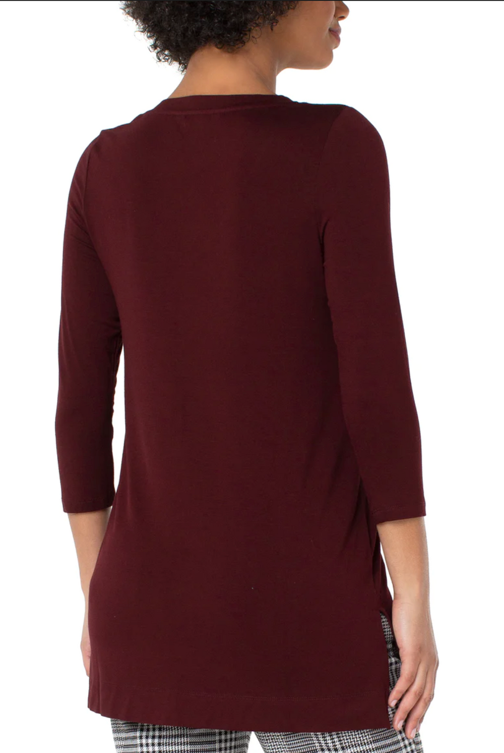 This 3/4 sleeve v-neck top is super comfortable and easy to layer. The must have essential featuring a side slit and hi low hem. Perfect to wear with leggings or skinny jeans. True to size. 97% Modal, 3% Spandex