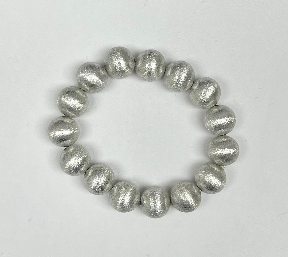 - Beautiful fashion beaded bracelet will add the pizazz you need for your outfit. A large 12mm brushed bead stretch bracelet.