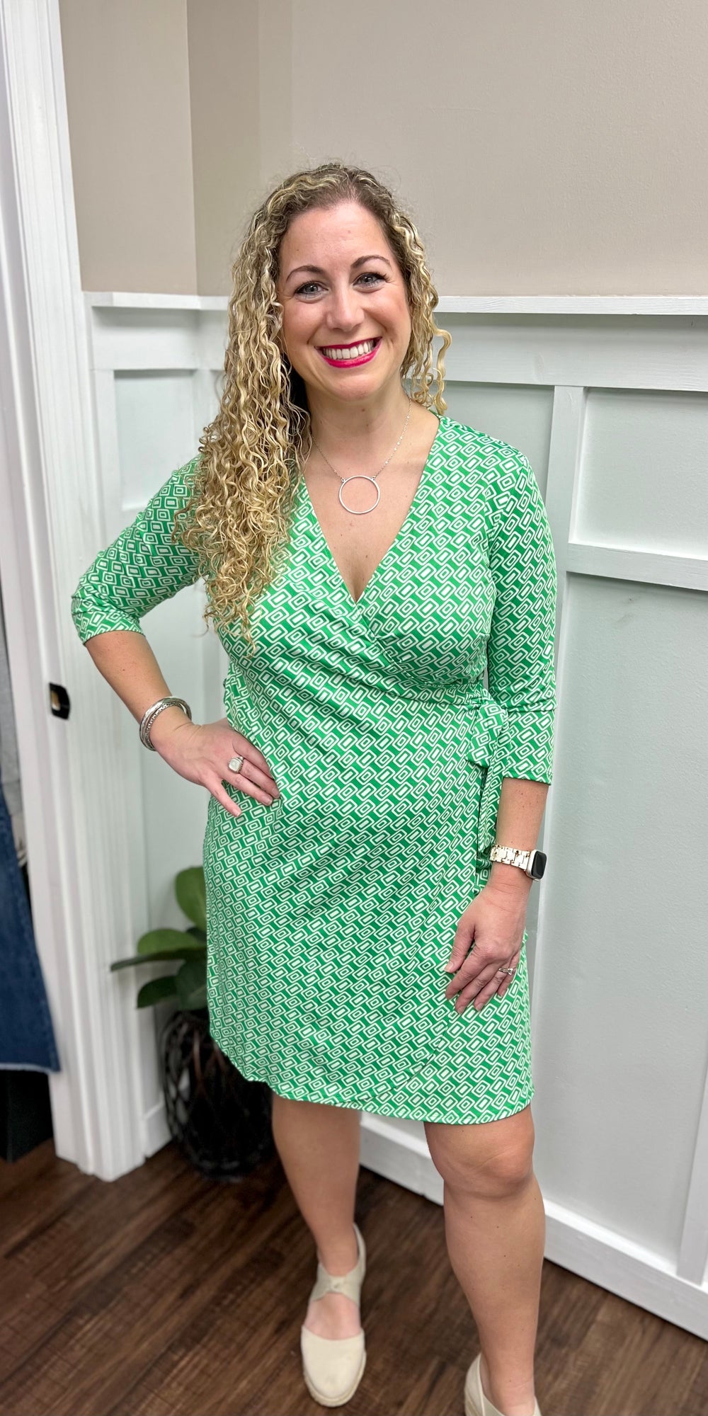 Turn heads with effortless elegance in the Melina Wrap Dress. Featuring a classic wrap design, this dress offers a flattering, more fitted silhouette that highlights your shape in all the right places. The knee-length cut and tulip hem bring a feminine touch, while the 3/4 sleeves provide the perfect balance of style and coverage.