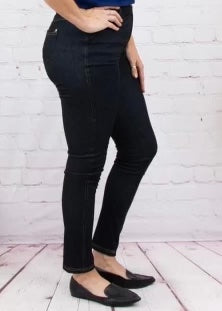 Rock the no muffin top look with Mindy No Muffin Jeans! These high rise black skinny jeans are figure hugging and provide full coverage, enhancing your curves and giving you a slim fit waistline. With no back waist gap and a flawless fit, you'll never have to worry about a muffin top again. True to size. (Skinny fit.)