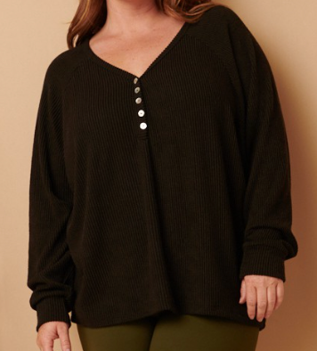 • The perfect comfy top with a soft texture rib fabric with button front and long sleeves.  You will want to sleep in this top.  Available in small - 2X.
